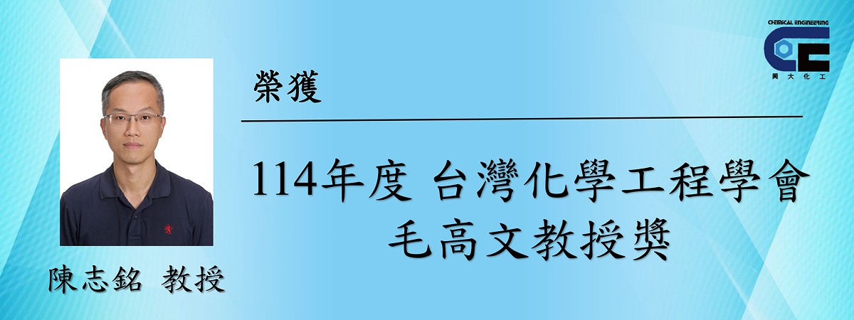 【教師榮譽】恭賀!!!陳志銘老師 榮獲114學年度 台灣化學工程學會 毛高文教授獎!!!