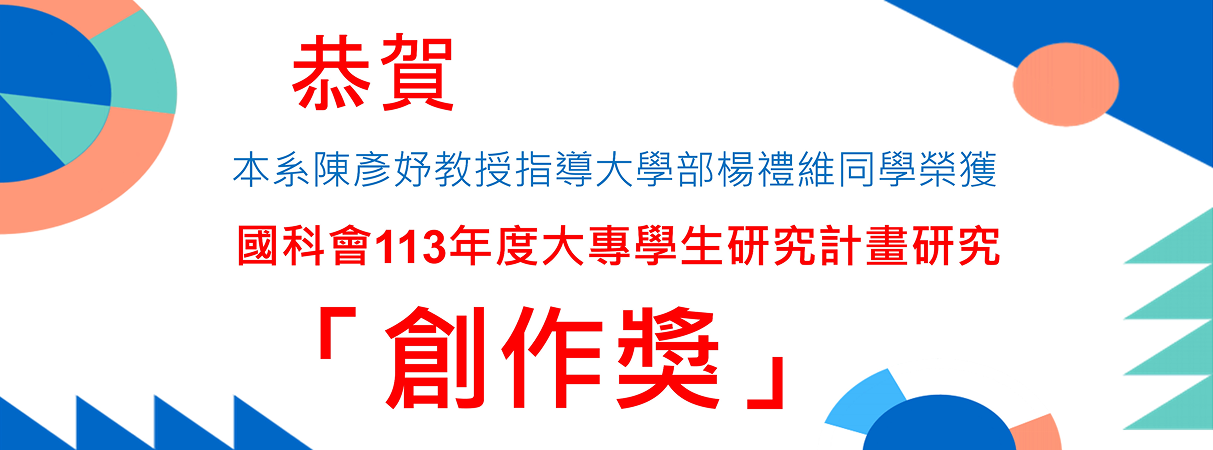 同賀!!! 陳彥妤老師指導之大學部「楊禮維」同學 榮獲國科會113年度大專學生研究計畫研究「創作獎」!!