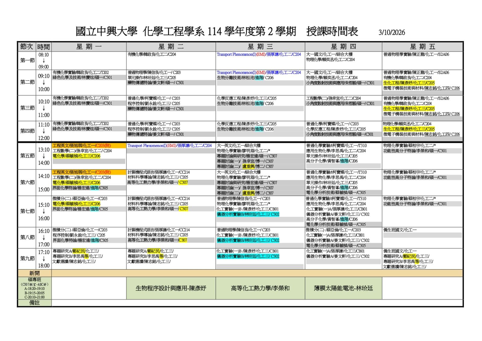 114學年度2學期 大課表